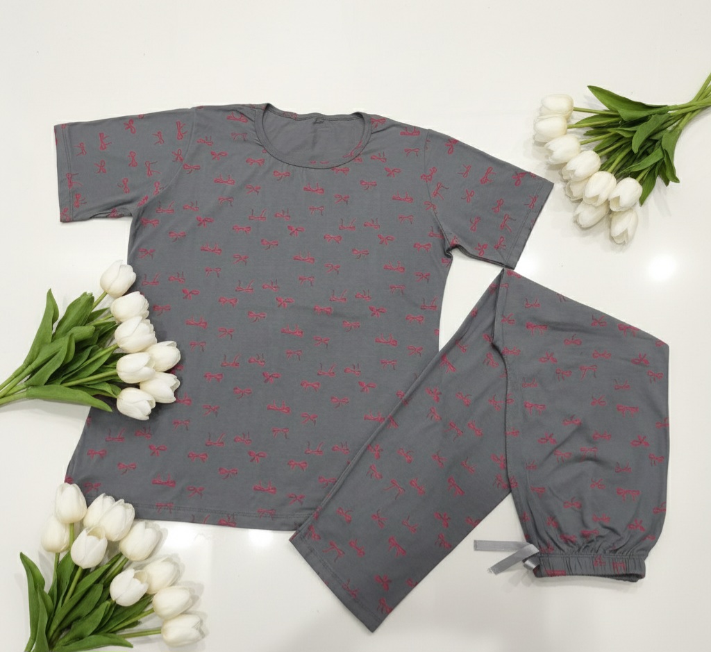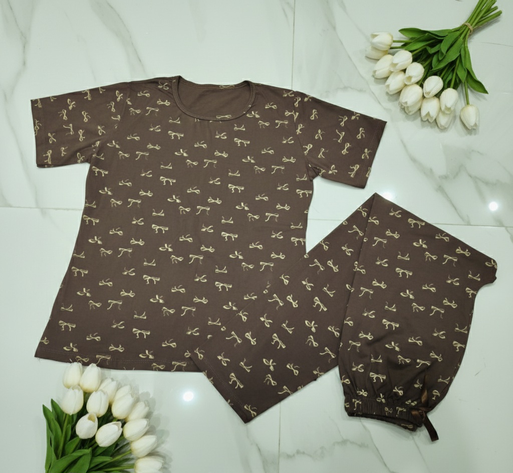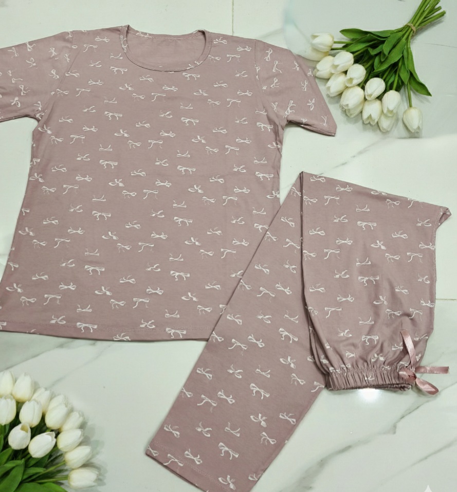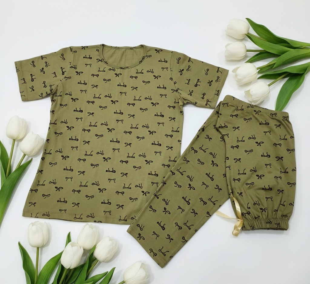 ست تیشرت و شلوار نخ پنبه طرح پاپیونی (کیفیت پرمیوم)