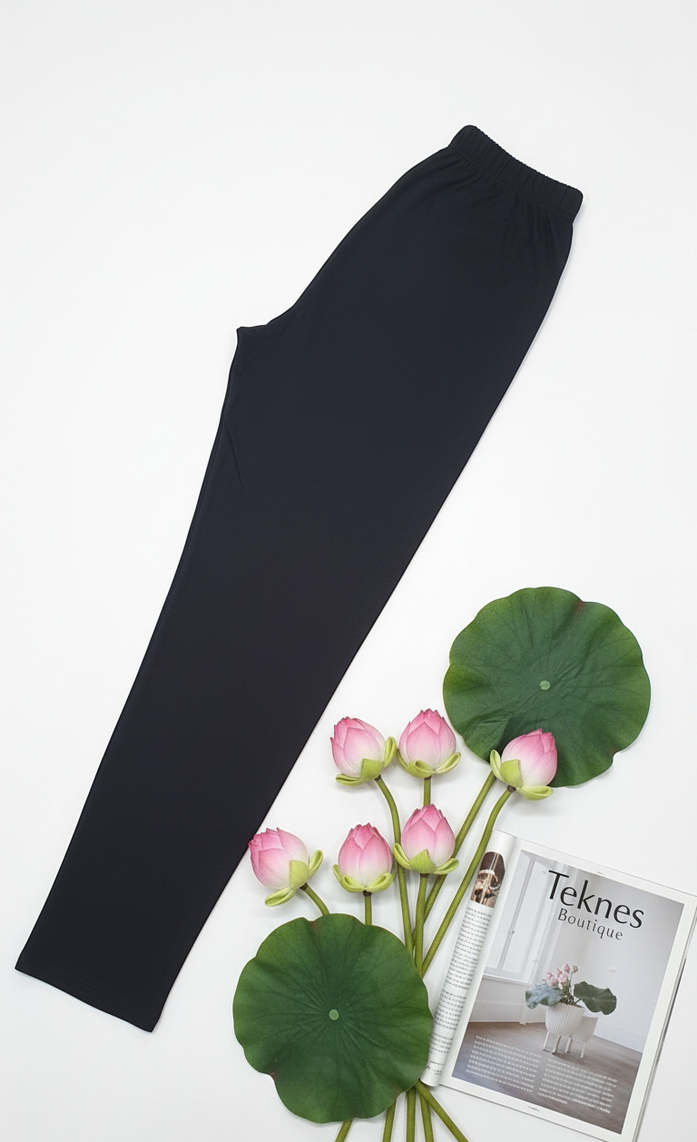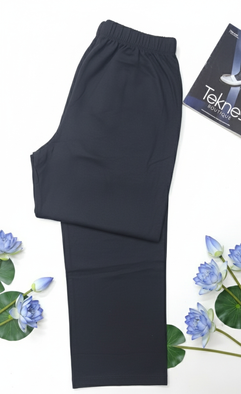 شلوار مشکی نخی کد ۱۶۰: جنس نرم و گرم مناسب پاییز و زمستان. قد کار ۱۰۵ و مرغکدار با فاق ۴۰ سانتیمتر. راحتی و گرما را با این شلوار نخی تجربه کنید.